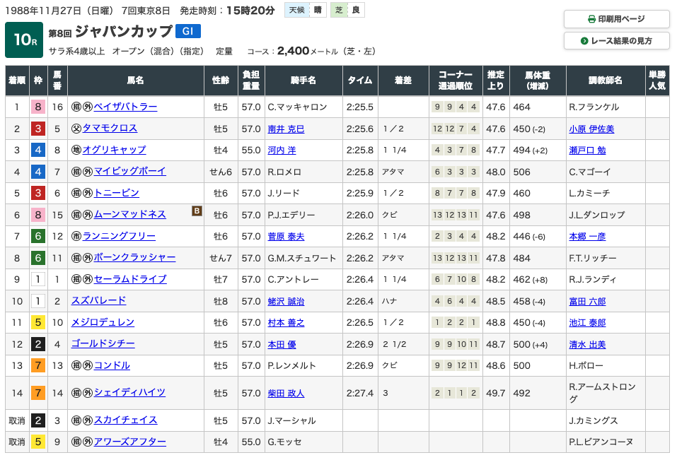 秋の大舞台として挑んだのがジャパンカップです。