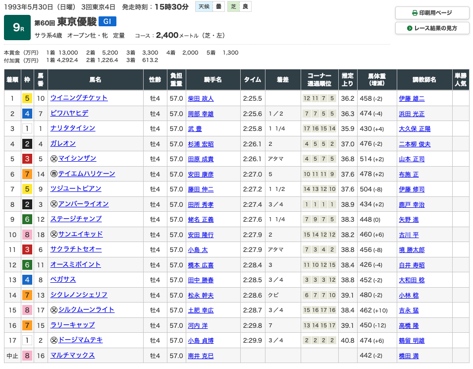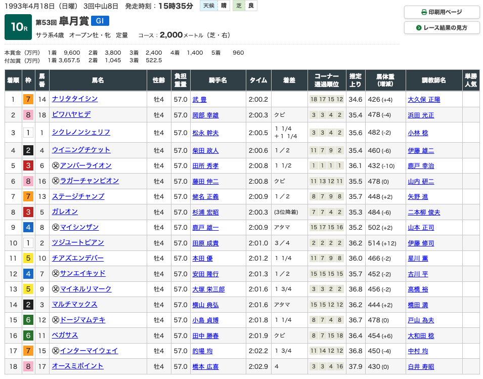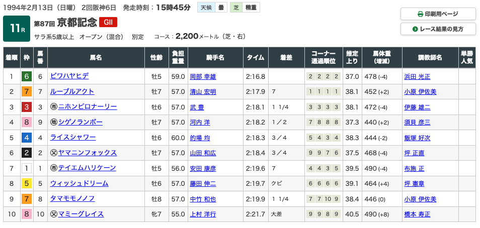 タイムもコースレコードとビワハヤヒデの実力に結果がついてきた瞬間でした。