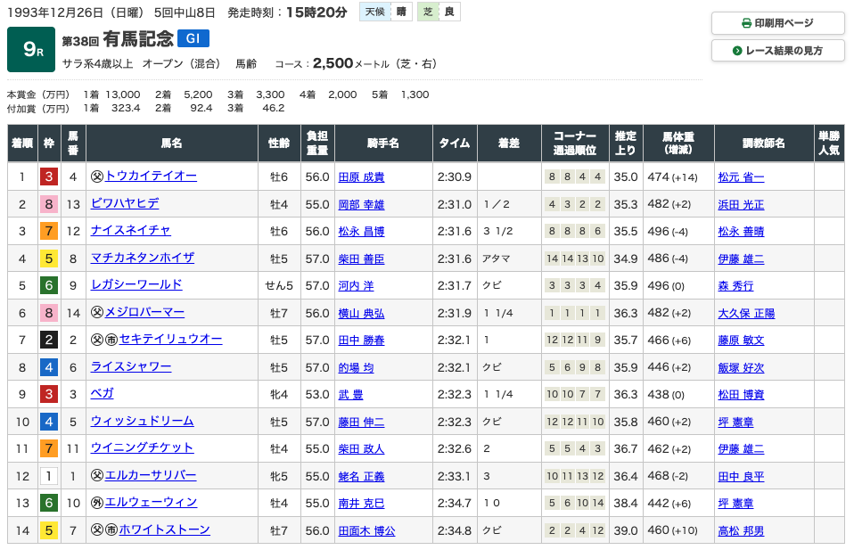 それでもなお届かなかったという事実が、このレースのレベルの高さ、そしてトウカイテイオーの劇的な復活を際立たせています。