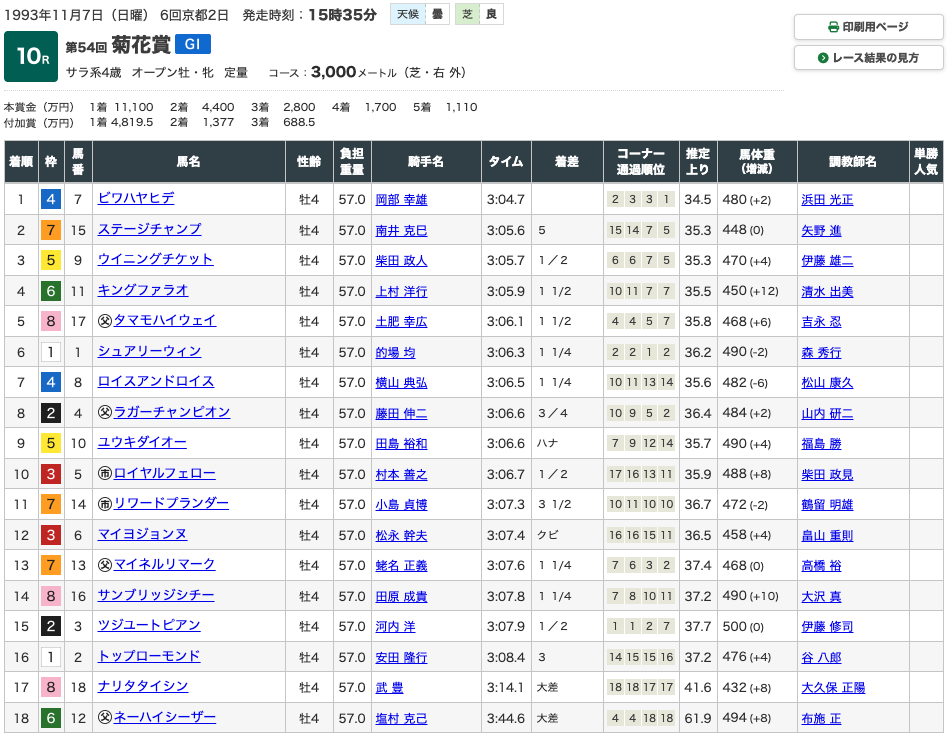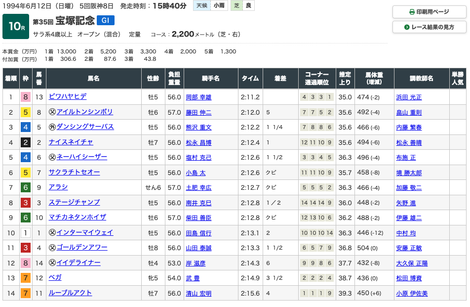 それを裏付けるように皐月賞・日本ダービーを取っていないにも関わらず1番人気に押されたことから、ビワハヤヒデの強さがどれだけのものかわかると思います。