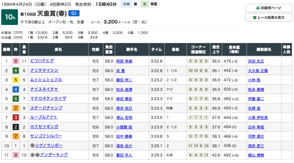 1994年のビワハヤヒデは、まさに“完成された強さ”を体現した一年でした。